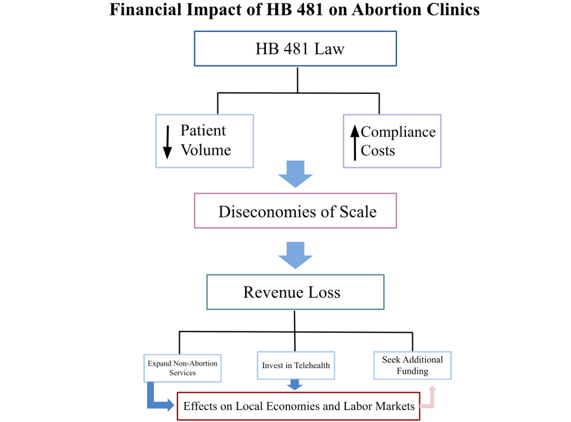 Economically, HB 481 acts as a negative supply shock for Georgia’s abortion clinic market which disrupts the flow of revenue and forces abortion clinics to strategically adjust their sources of income. Particularly for smaller clinics, decreased patient volumes coupled with increased compliance costs creates diseconomies of scale. To offset these losses, clinics have expanded their service offerings to generate alternative income; these adjustments illustrate how policy restrictions redirect financial incentives. They push clinics towards investing in cost cutting technologies and remote care. Overall, these financial adjustments demonstrate how reproductive policy restrictions ripple through labor markets, local economies, and the healthcare market. Looking ahead, abortion clinics in Georgia are likely to continue expanding non-abortion services, invest further in telehealth infrastructure, and pursue additional private and municipal funding opportunities to maintain financial stability. These strategies will allow clinics to adapt to ongoing policy restrictions and continue serving patients in a rapidly changing reproductive healthcare landscape.